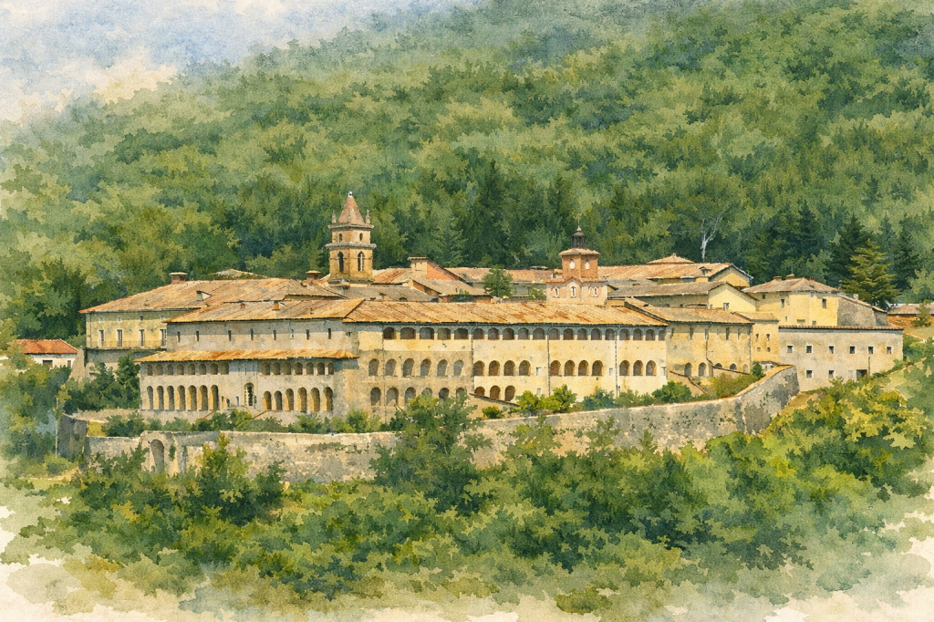Hidden deep within the wooded folds of the Ernici Mountains, the Certosa di Trisulti is not a place one simply “stops by.” It is a destination that asks for intention, time, and a willingness to step outside ordinary routes. Reaching it already feels like a transition: roads narrow, forests thicken, and the landscape begins to quiet down long before the monastery appears.